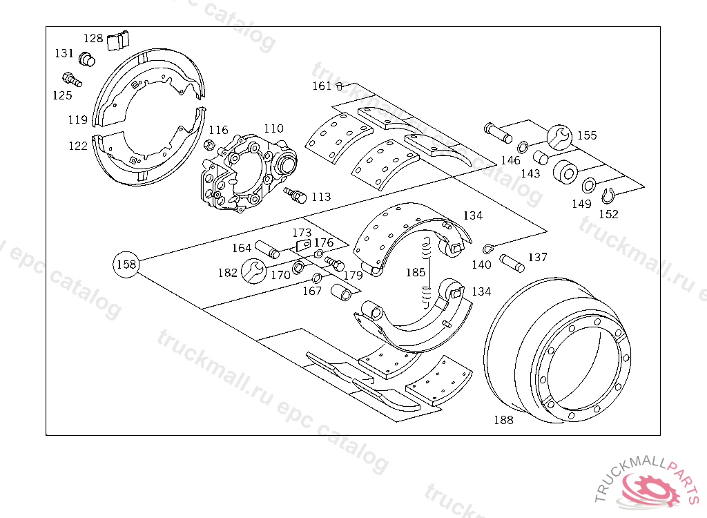 BRAKE SHOE , FIRST EXHAUST STOCK OF OLD PARTS UP TO FRONT AXLE E 128437, Replaced By: A3934202519