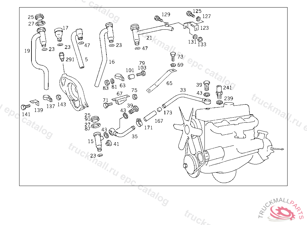CLAMP DELIVERY AND SUCTION LINES TO ENGINE, FRONT
