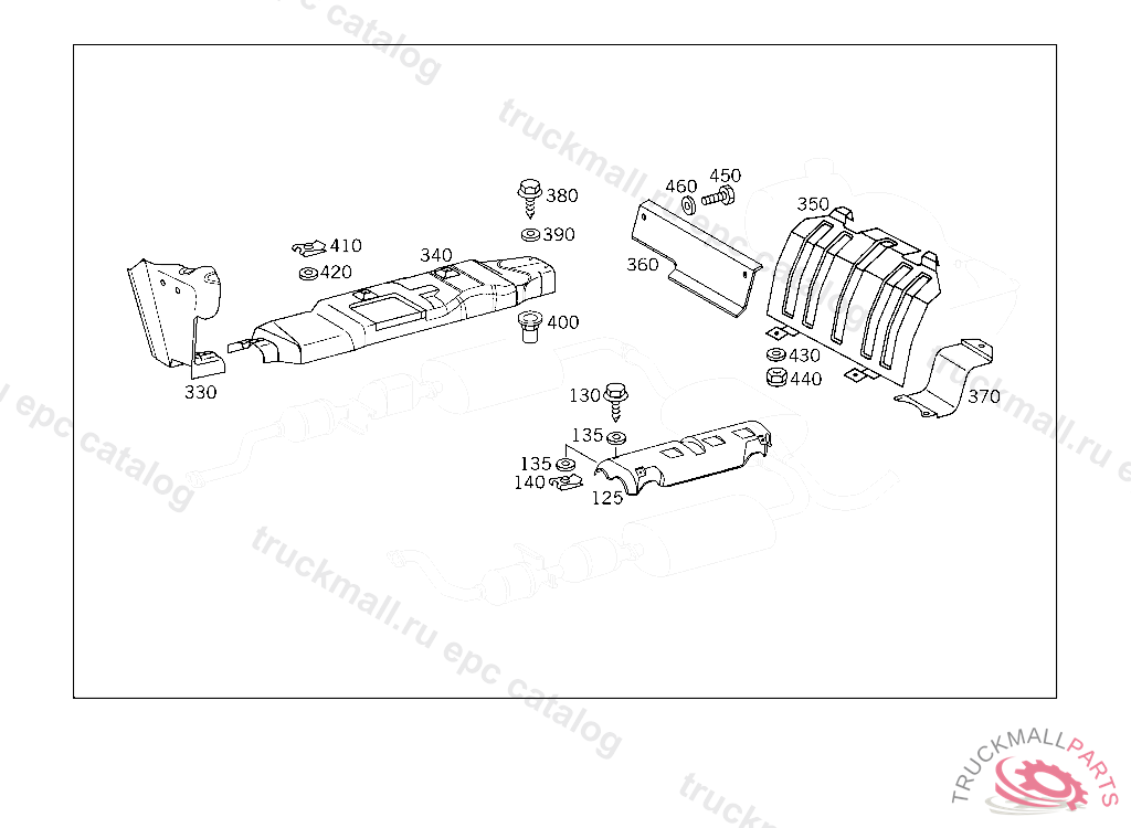 PROTECTIVE PLATE AT FRAME ABOVE MUFFLER REAR