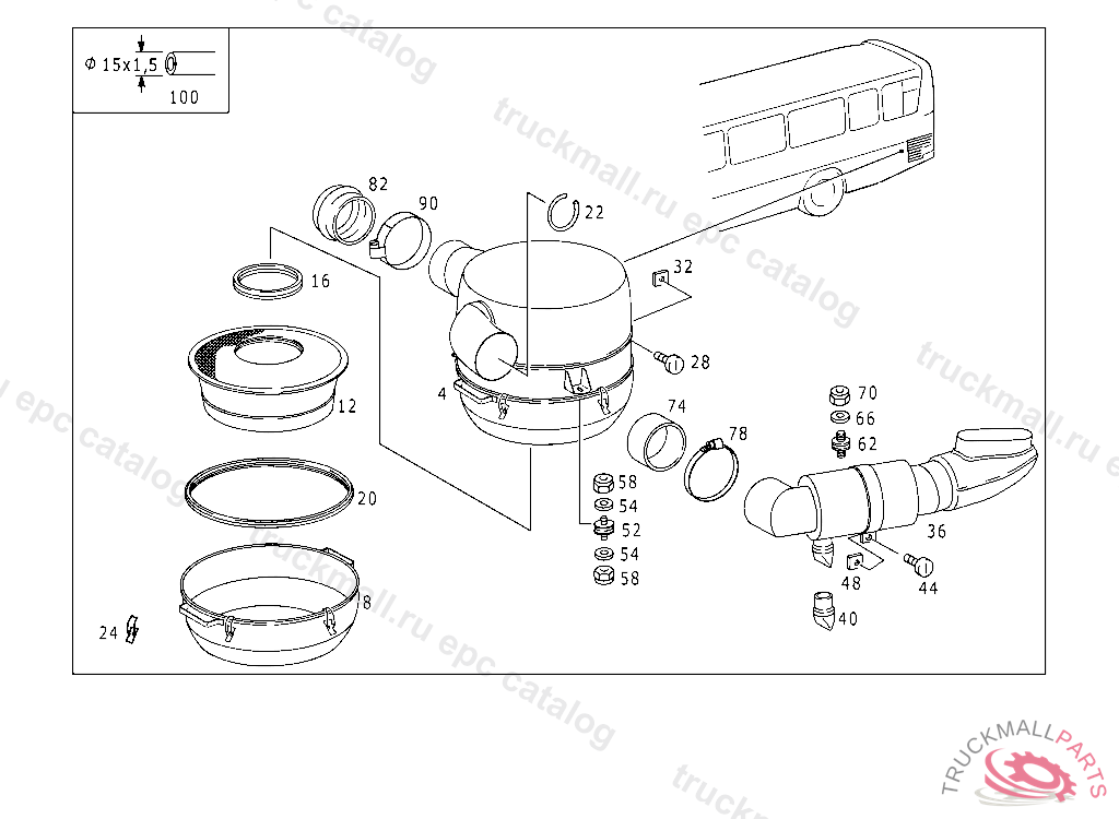 HOSE CLAMP FROM AIR CLEANER TO TRANSVERSE INTAKE PIPE, Replaced By: A0019951910