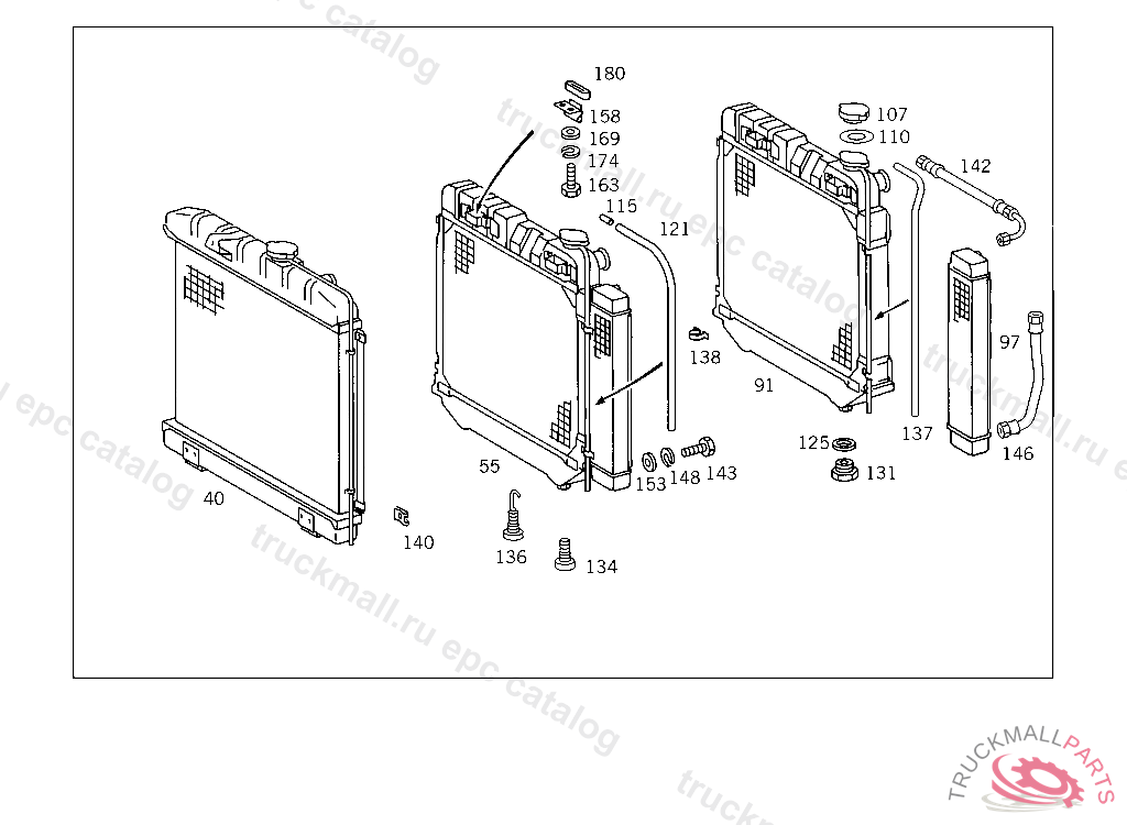 RADIATOR , EXHAUST STOCK OF OLD PART NUMBERS FIRST UP TO IDENT NO. P 251776 ONLY USED OM601 P 251434 ONLY USED OM602 P 251573 ONLY USED WITH AUTOMATIC TRANSMISSION, Replaced By: A6015008203