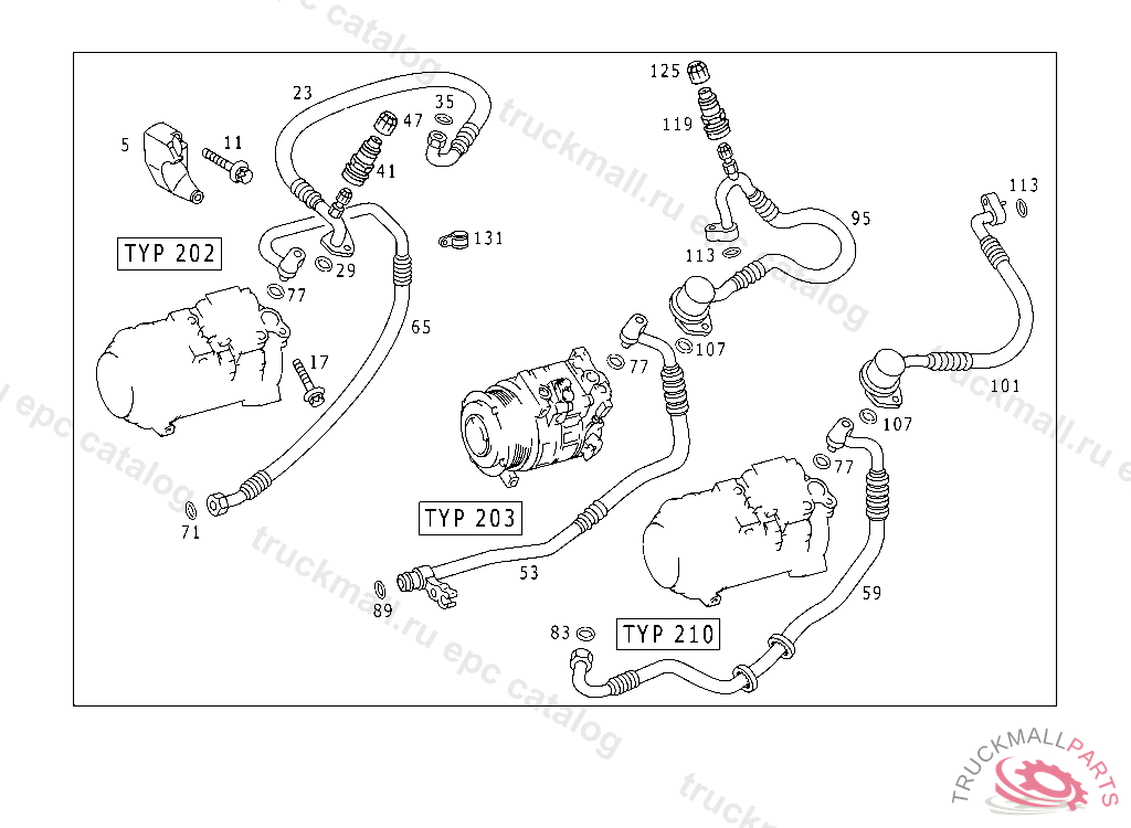 REFRIGERANT LINE. PIPE DELIVERY LINE, FROM MODEL YEAR 2000CODE 800 203 A 237174 203 F 177685 203 R 028782 210 B 438527 210 X 065665 902 - 904 337627 638 246706 SEE CHASSIS PARTS KIT FOR "FROM VIN" NO.