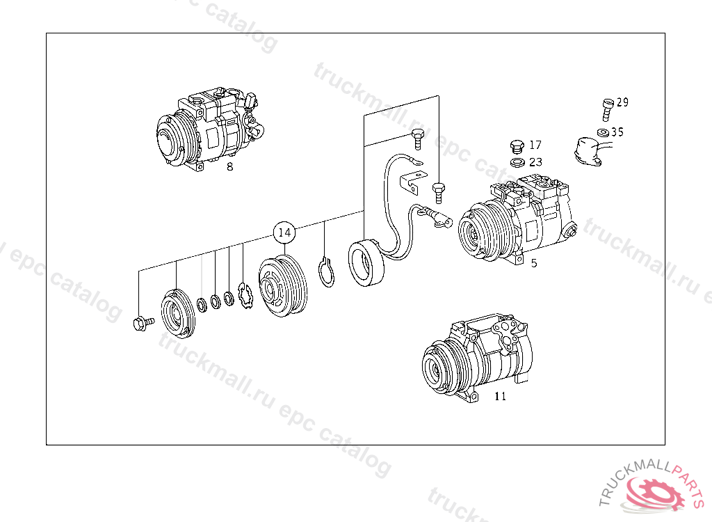 COMPRESSOR , 163 A 299267 163 X 755659 203 A 237174 203 F 177685 203 R 028782 210 B 438527 210 X 065665 463 X 127404 902 - 904 337627 SEE CHASSIS PARTS KIT FOR "FROM VIN" NO.