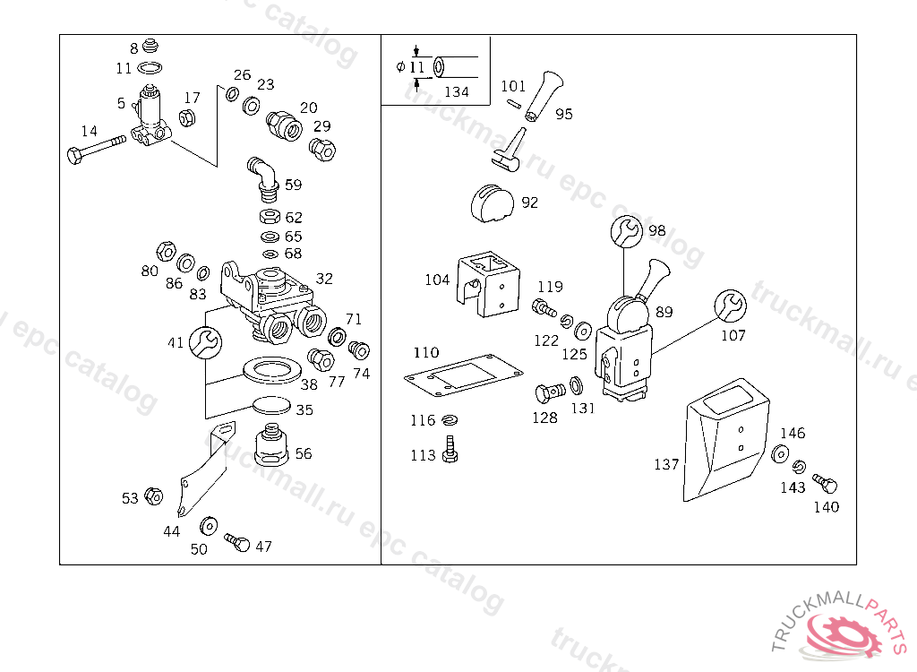 REPAIR KITTO 001 430 58 81/59 81,WABCO, WITH HAND BRAKE VALVE ON ENGINE TUNNEL, FROM IDENT NO. SEE MF 26032