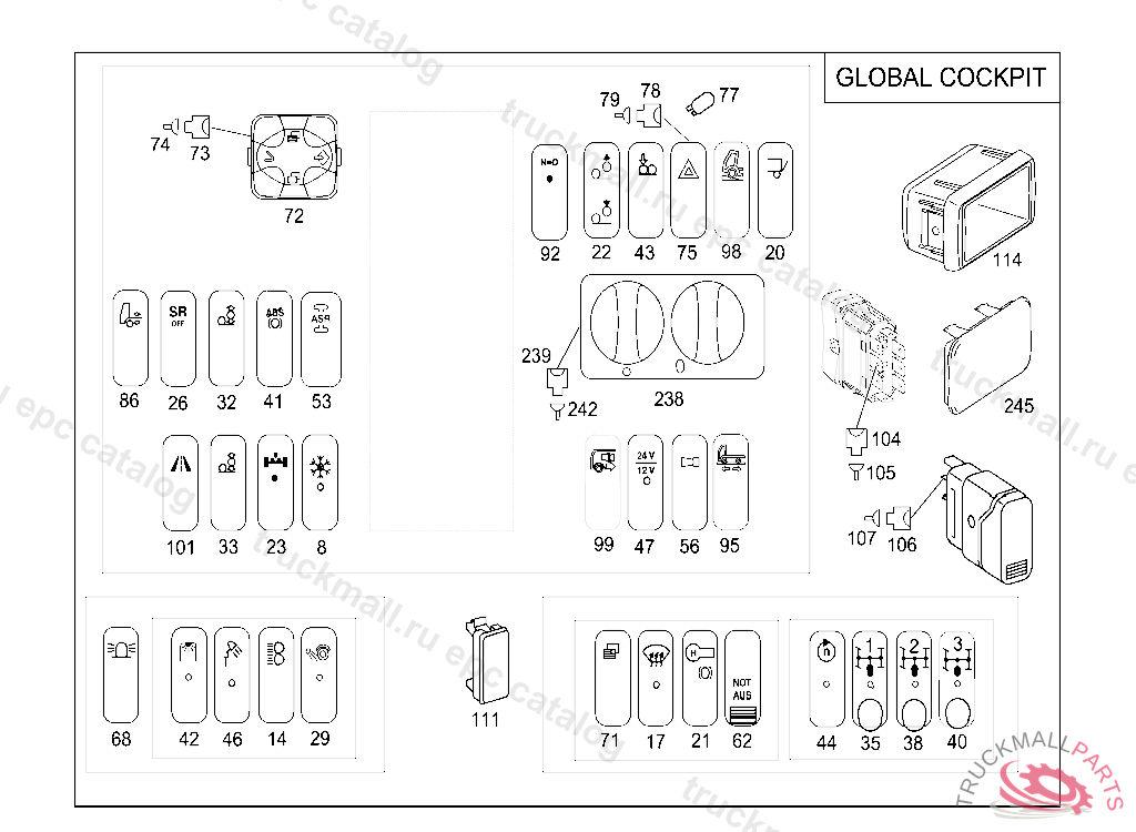 SWITCH TRANSVERSE DIFFERENTIAL LOCK,REAR AXLE GLOBAL COCKPIT