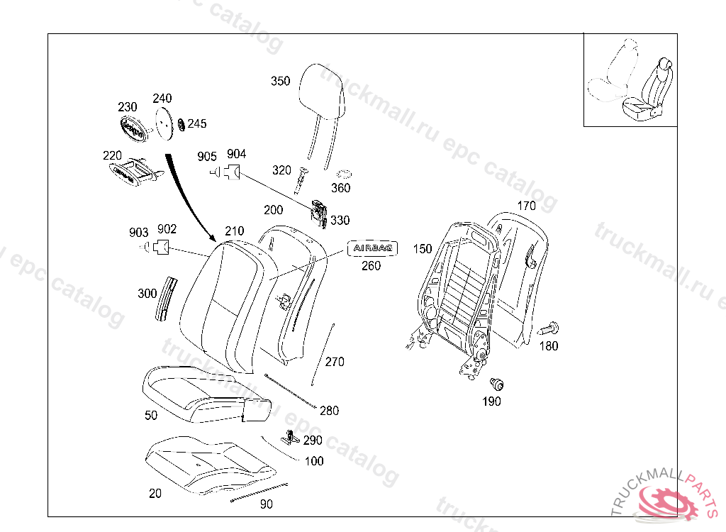 PAD FRONT SEAT BACKREST , A 26557620081001809 L 00540020090531, Replaced By: A2219103704