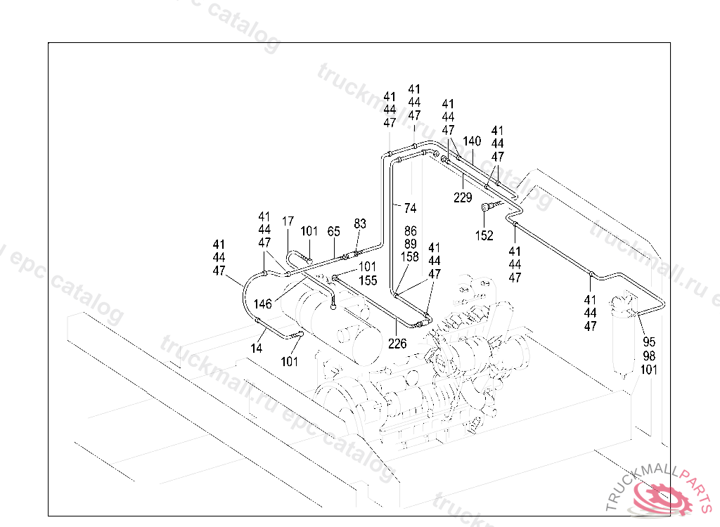CLAMP DELIVERY AND SUCTION LINES TO ENGINE, FRONT