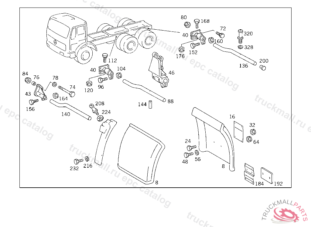 BEARING BRACKET , 393.311 UP TO CHASSIS 4 450302,393.321 UP TO CHASSIS 4 453 074,395.312,322,412,422 UP TO CHASSIS 4 426005