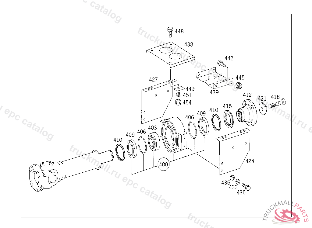 PROTECTIVE CAP FOLLOWER FLANGE, INTERMEDIATE BEARING, BALL BEARING IN RUBBER SEAT