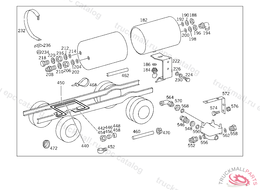 LINE FROM BRAKE VALVE,CONNECTION "22",TO DIAPHRAGM CYLINDER 3670 MM