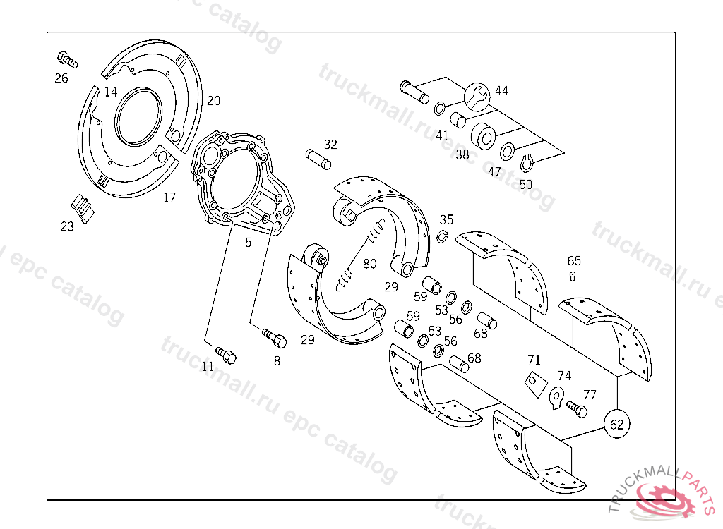 BRAKE SHOE , FIRST EXHAUST STOCK OF OLD PARTS UP TO REAR AXLE 742221, Replaced By: A3934202919