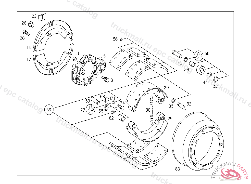 BRAKE SHOE , FIRST EXHAUST STOCK OF OLD PARTS UP TO FRONT AXLE E 128437, Replaced By: A6204200219