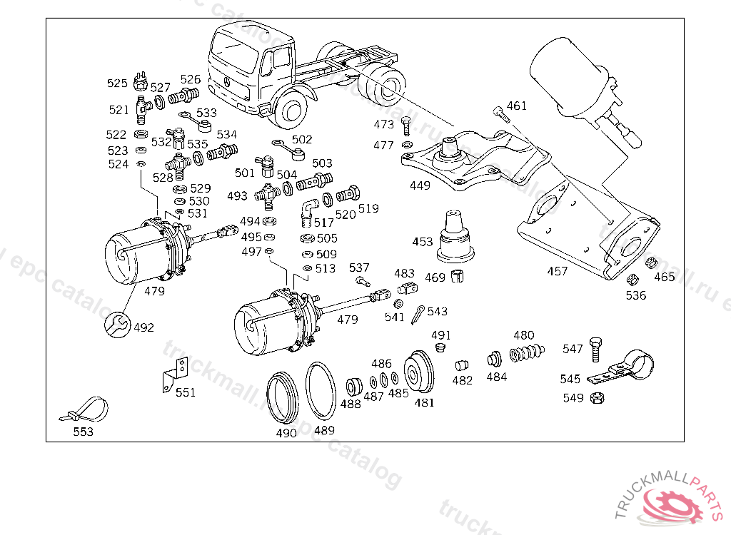 REPAIR KIT SPRING LOAD ACCUMULATOR CYLINDER TO 006 420 05 18, FROM AXLE 213195,UP TO AXLE 213194 SEE SPARE PARTS LIST 740.104