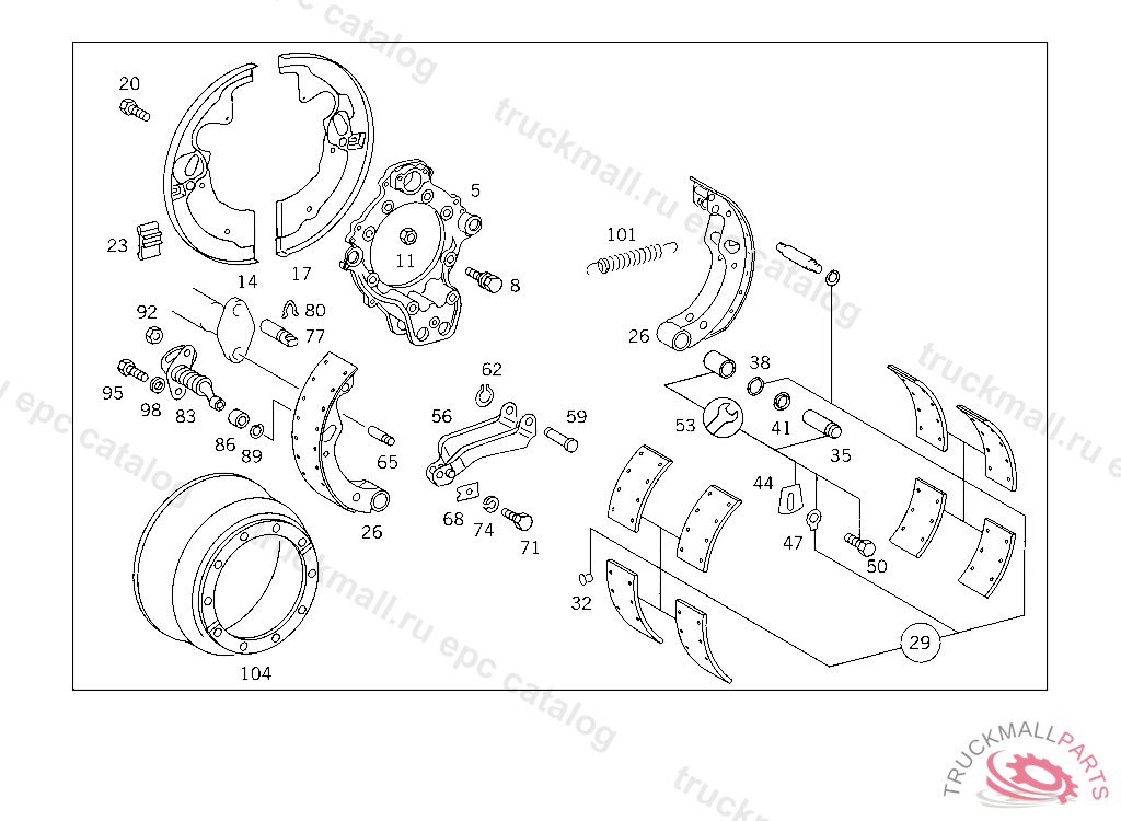 BRAKE SHOE , EXHAUST STOCK OF OLD PARTS NUMBER FIRST UP TO FRON AXLE D 027673,E 092867,G 009579, Replaced By: A3854201719