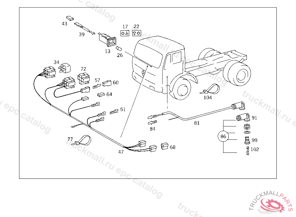 ELECTRIC CABLE FROM CHASSIS/CAB CONNECTION POINT TO SWITCH