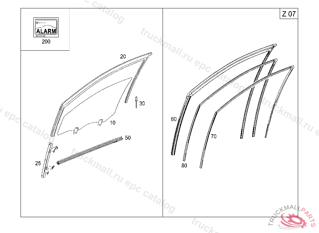 WINDOW GUIDE RAIL RIGHT, A 15638520070614 L 00197920070630