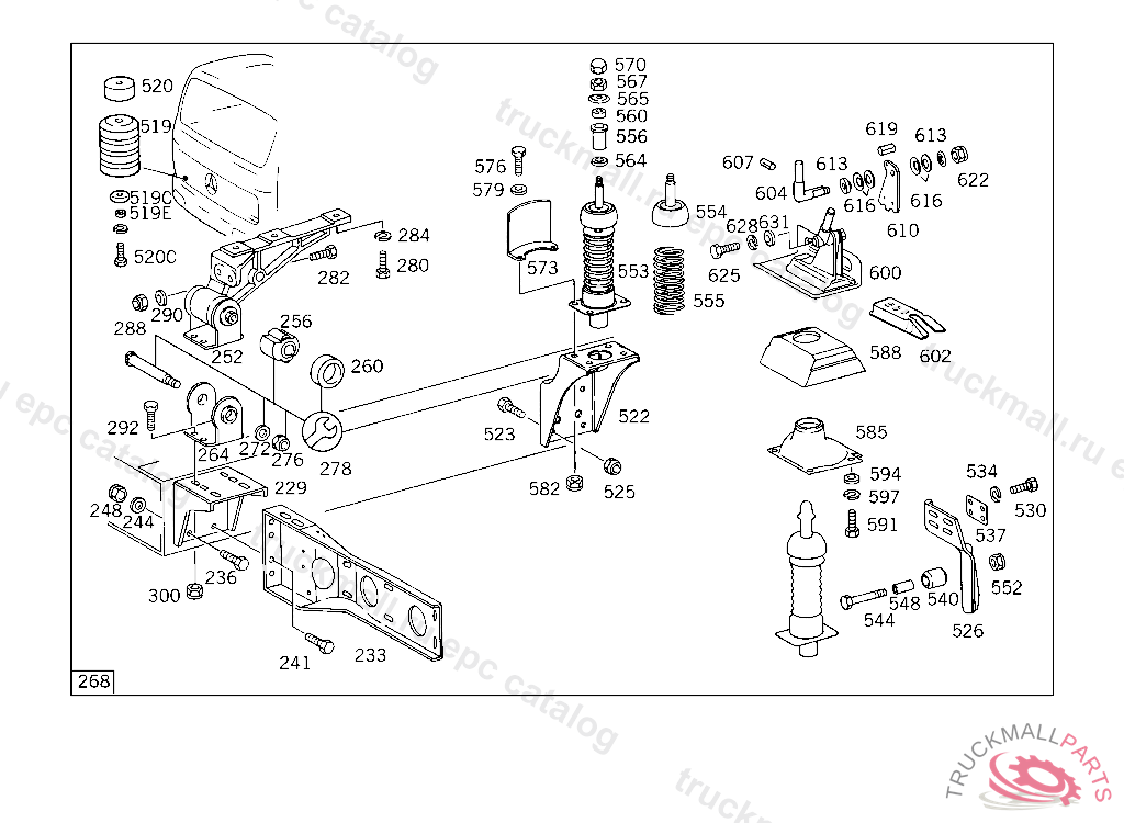 REPAIR KIT CAB SUSPENSION,FRONT, FOR USE WITH SHORT MERCEDES-BENZ CAB5 764324