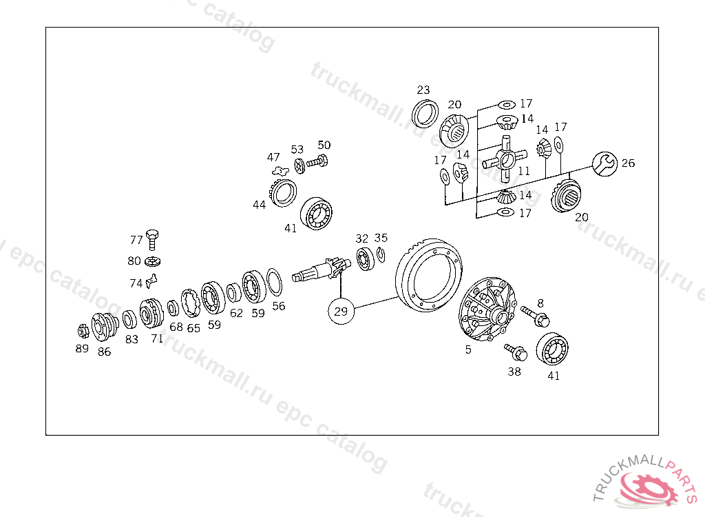 DIFFERENTIAL GEAR LESS RING GEAR AND PINION, 309.000-026 FROM CHASSIS 005892,309.070-091 FROM CHASSIS 001200,309.100-126 FROM CHASSIS 093945