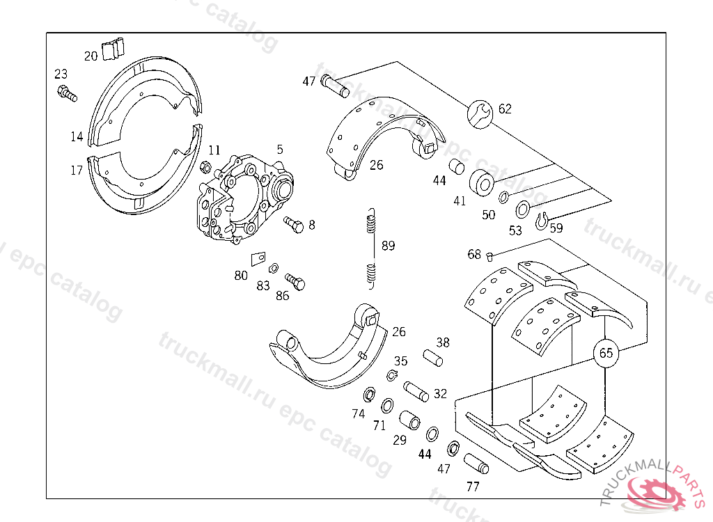 BRAKE SHOE , EXHAUST STOCK OF OLD PARTS NUMBER FIRST UP TO FRON AXLE D 027673,E 092867,G 009579, Replaced By: A3934202419