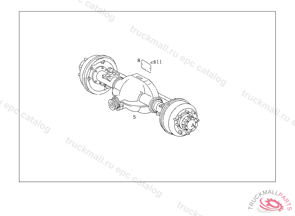 REAR AXLE WITH BRAKES,BRAKE DRUMS,HUBS,AND HAND BRAKE LINKAGE, RATIO: 41:7, UP TO REAR AXLE 3 312607,DELIVER ADDITIONALLY: U-BOLT AND SPRING CLAMPING PLATE, SEE CHASSIS MICROFICHE,GROUP 32