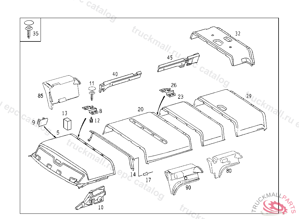 HEADLINER WITH LOAD COMPARTMENT SLIDING DOORS, LH AND RH, TO BE PROCURED FROM MBA ONLY