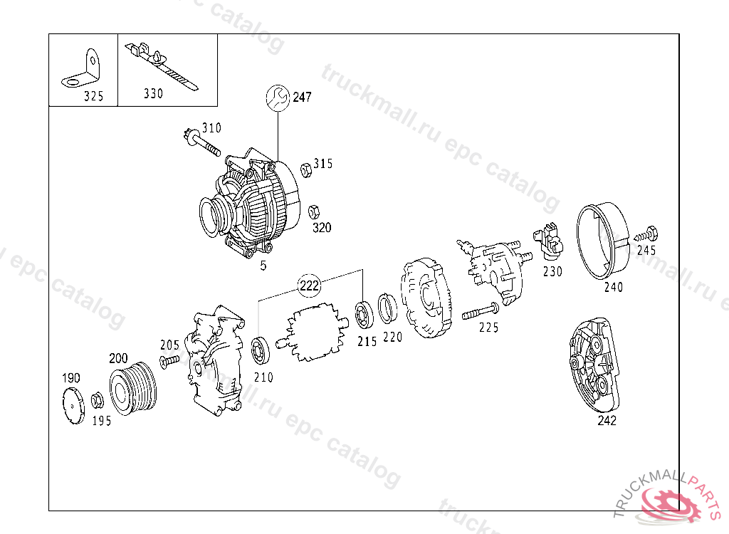 ALTERNATOR14V/150A, COMPONENT PARTS NOT AVAILABLE 203 A 237173 203 F 177684 203 R 028781 210 B 438526 210 X 065664 901-904 R337626 638 246705 SEE CHASSIS PARTS KIT FOR "FROM VIN" NO. PART IS ONLY OR ALSO SUPPLIED AS RECONDITIONED PART