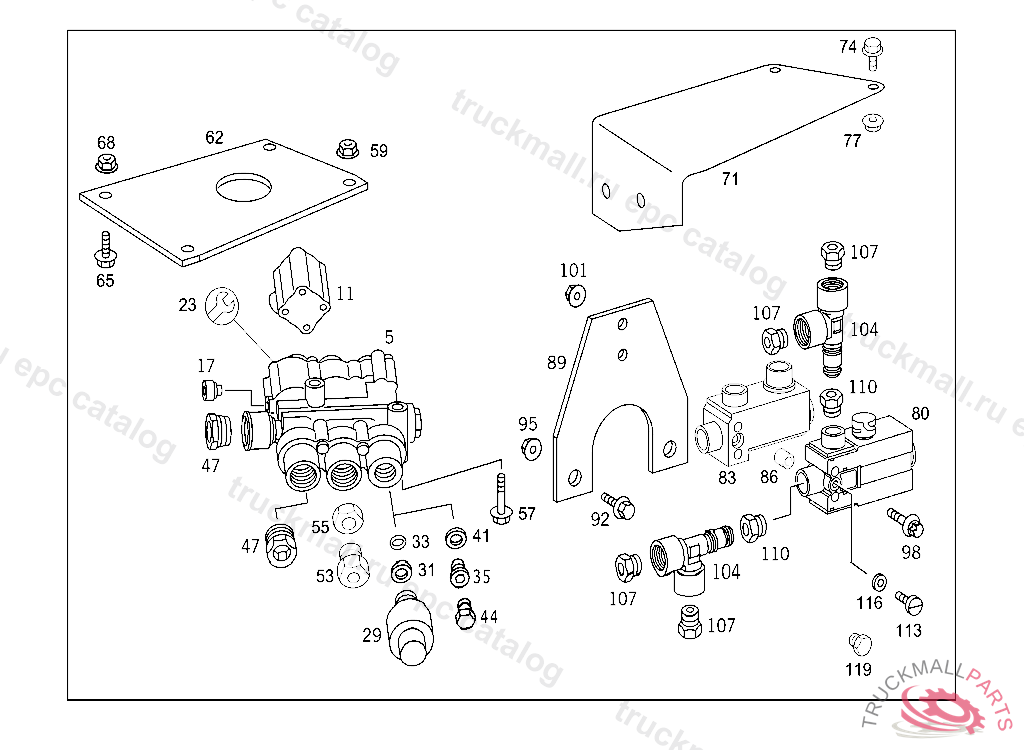 VALVE SELF-LEVELLING DEVICE CONTROL VALVE, NOTE C74 NOTE IN FDOK FOR COMPONENT PARTS SEE SPARE PARTS LIST