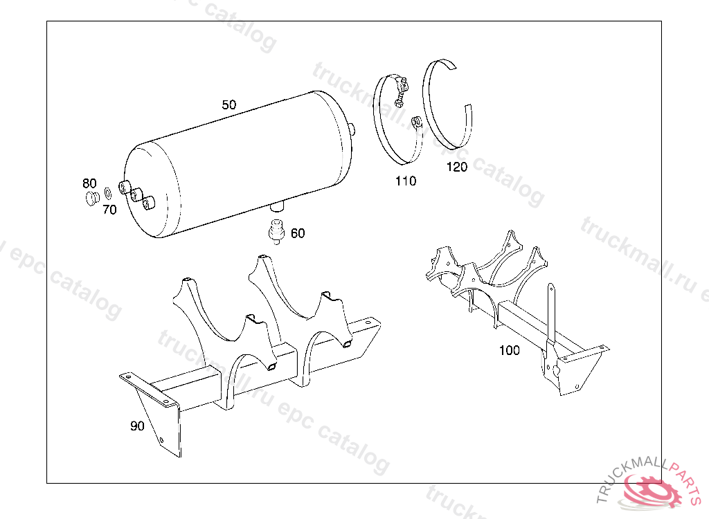 RESERVOIR20 L, TO VOSS 232, FOR VEHICLES WITH VOSS 230 CONNECTOR: ADD. MOUNT FITTING "A 004 997 82 72" WITH O-RING "A 000 987 04 46" AND THRUST RING "A 000 997 02 03" TO AIR RESERVOIR