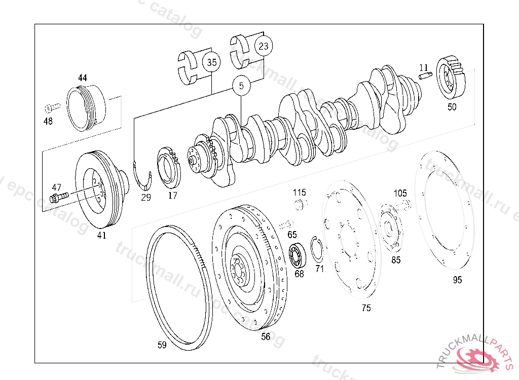 CRANKSHAFT WITH CRANKSHAFT BEARING SHELLS,CONNECTING ROD BEARING SHELLS AND THRUST PLATES, REMAN PART - WHEN YOU ORDER THIS PART PLEASE ADD THE PREFIX"R" IN FRONT OF THE PART NO.