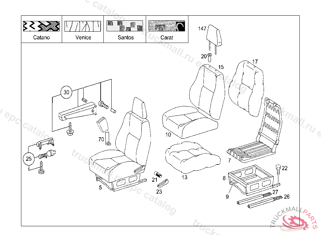 SEAT. STANDARD SEAT LEFT VELOURS "CATANO", IF REQUIRED ARMREST MUST BE ORDERED SEPARATELY ALSO TO BE ORDERED: A 002 860 01 69