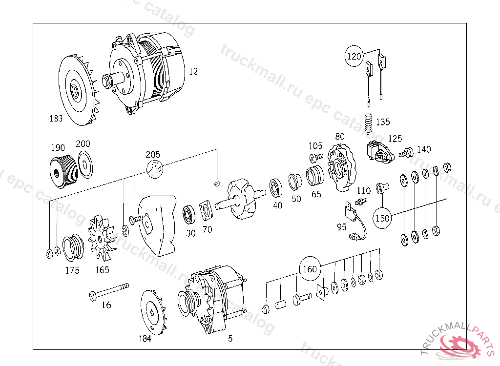 ALTERNATOR FOR BREAK-DOWN,SEE ENGINE STANDARD VERSION,MODEL: 904.904 / NL1 28V/100A, FOR COMPONENT PARTS SEE SPARE PARTS LIST