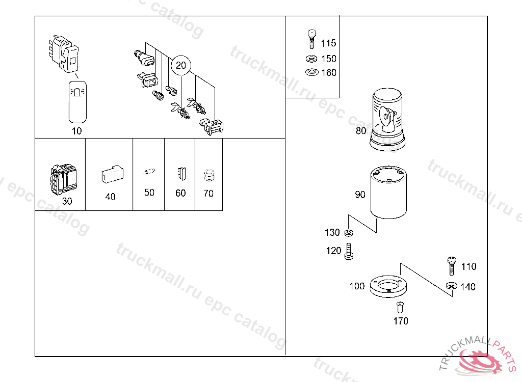 SWITCH REVOLVING BEAM SIGNAL LAMP LKT + GLOBAL COCKPIT, 10 PIN
