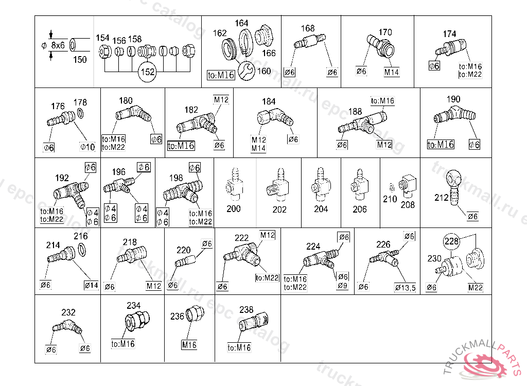 CONNECTION PIECE COMPRESSED-AIR-LINE PLUG-CONNECTION TO M16, 6MM, VOSS 232, Replaced By: A0049976989
