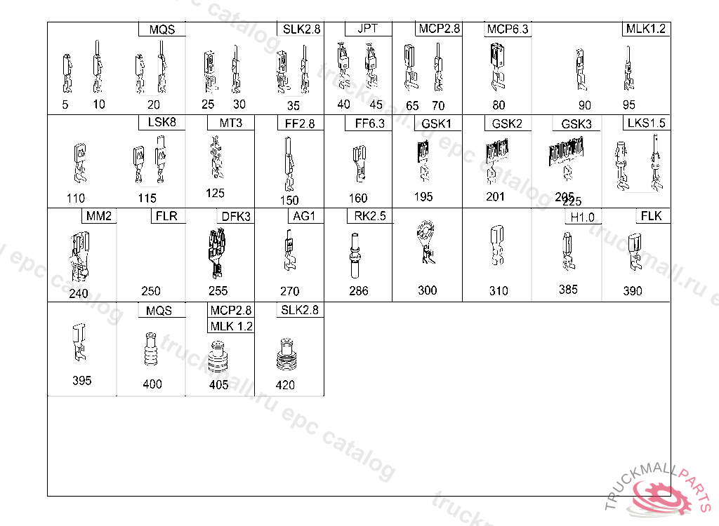 REP.SET CONTACT0.75 MM2 SLK2.8, CONNECTORS MUST ALSO BE ORDERED IN ACC. WITH THE TOTAL CABLE C ROSS-SECTION TO BE CONNECTED. SEE WIS FOR REPAIR INSTRUCTIONS.SOLDER CONNECTOR SLEEVES:TOTAL WIRE CROSS-SECTION: A 001 546 99 41GREEN0.7 -2.4 MM2 A 002 546 00 41RED2.0 -4.0 MM2 A 002 546 01 41BLUE 3.5 -8.0 MM2 A 002 546 11 41YELLOW 7.5 - 12.0 MM2 BUTT JOINT: A 002 546 13 41 0.5 MM2 A 002 546 14 41 0.8 MM2 A 002 546 15 41 1.3 MM2 A 002 546 16 41 2.0 MM2