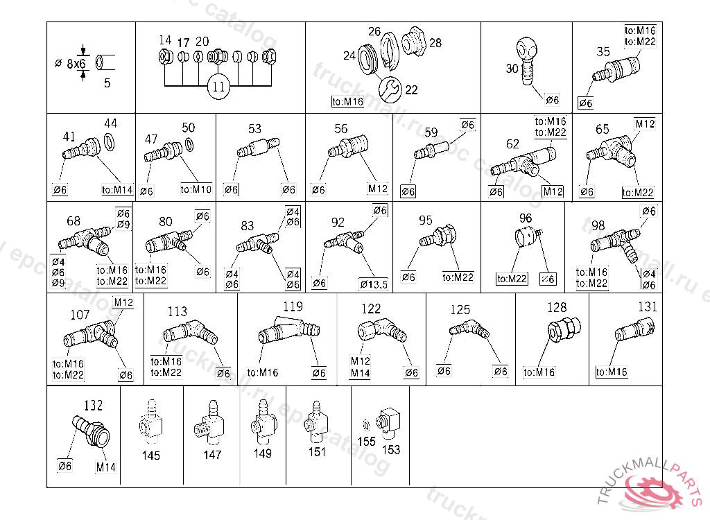 CONNECTOR HOSE WIDTH, 6 MM, TO M22