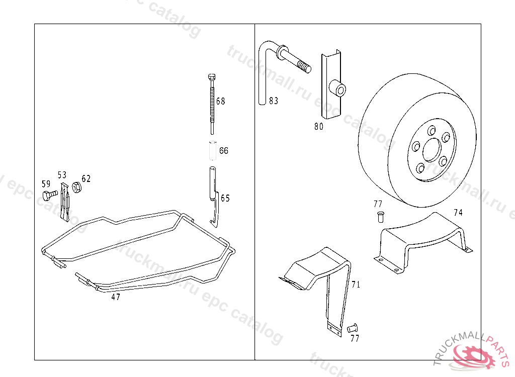 CLAMPING SCREW SPARE WHEEL CARRIER TO CROSS MEMBER 4025 MM, P 691610 R 000001