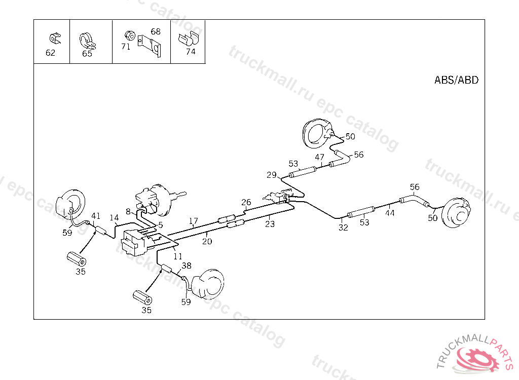 LINE FROM BRAKE POWER REGULATOR TO LEFT FRONT WHEEL,126.021 005796, 126.022,023 020032, 126.032,033 008371, 126.036,037 007212