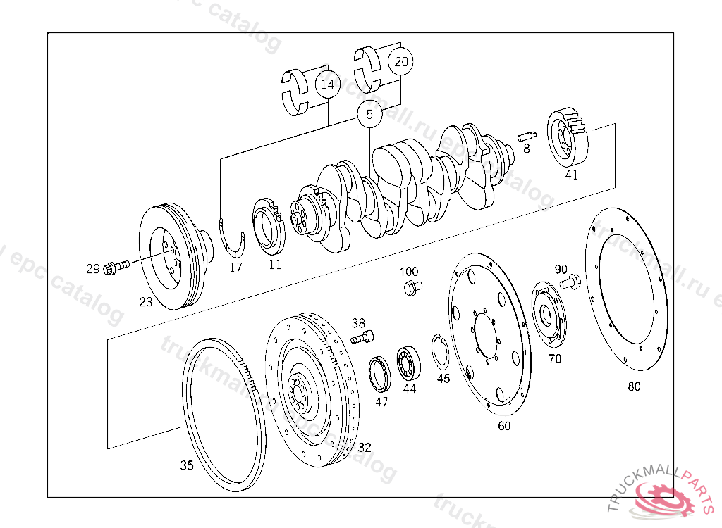 CRANKSHAFT WITH CRANKSHAFT BEARING SHELLS,CONNECTING ROD BEARING SHELLS AND THRUST PLATES, FIRST EXHAUST STOCK OF OLD PARTS UP TO ENGINE 125877, Replaced By: A9040300602