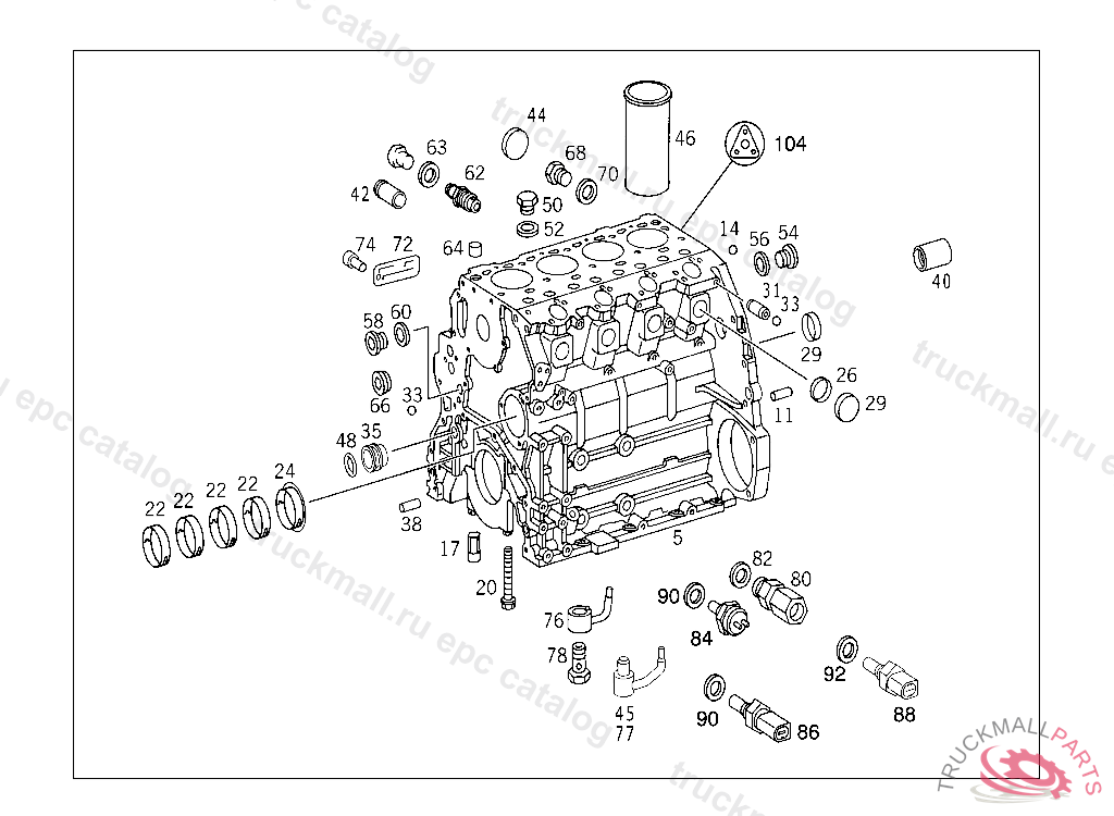 CRANKCASE , UP TO ENGINE 108128 ORDER ADDITIONALLY: 4X INJECTION PUMP, 5X MAIN BEARING PARTS KIT, 1X CYL. HEAD UP TO ENGINE 185256 ORDER ADDITIONALLY: 5X MAIN BEARING PARTS KIT, 1X CYL. HEAD UP TO ENGINE 301570 ORDER ADDITIONALLY: CYLINDERHEAD