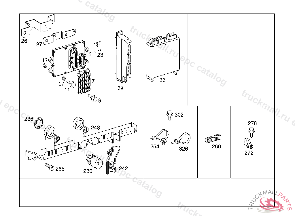 CONTROL UNIT VEHICLE TRANSFER CONTROL MODULE WITH INDEX 26, THE CLAMP SPRING A 000 993 30 07 MUST NO LONGER BE FITTED FOR THIS CONTROL UNIT 24 V