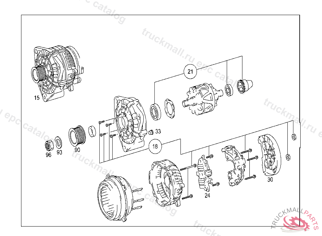 THREE-PHASE ALTERNATOR LESS PULLEY REMY 28V 80A, MUST NOT BE DISASSEMBLED