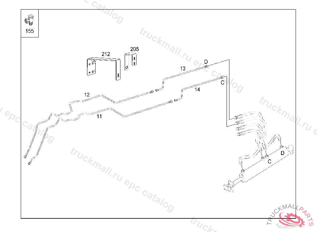 OIL LINE (PRESSURE LINE)CIRCUIT 2,STEERING GEAR CONNECTION C UP TO SEPARATION POINT C 12X1.5X1835MM