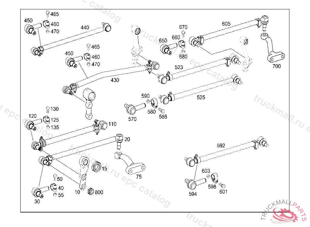 DRAG LINK FROM STEERING INTERMEDIATE BRACKET III TO FRONT AXLE II