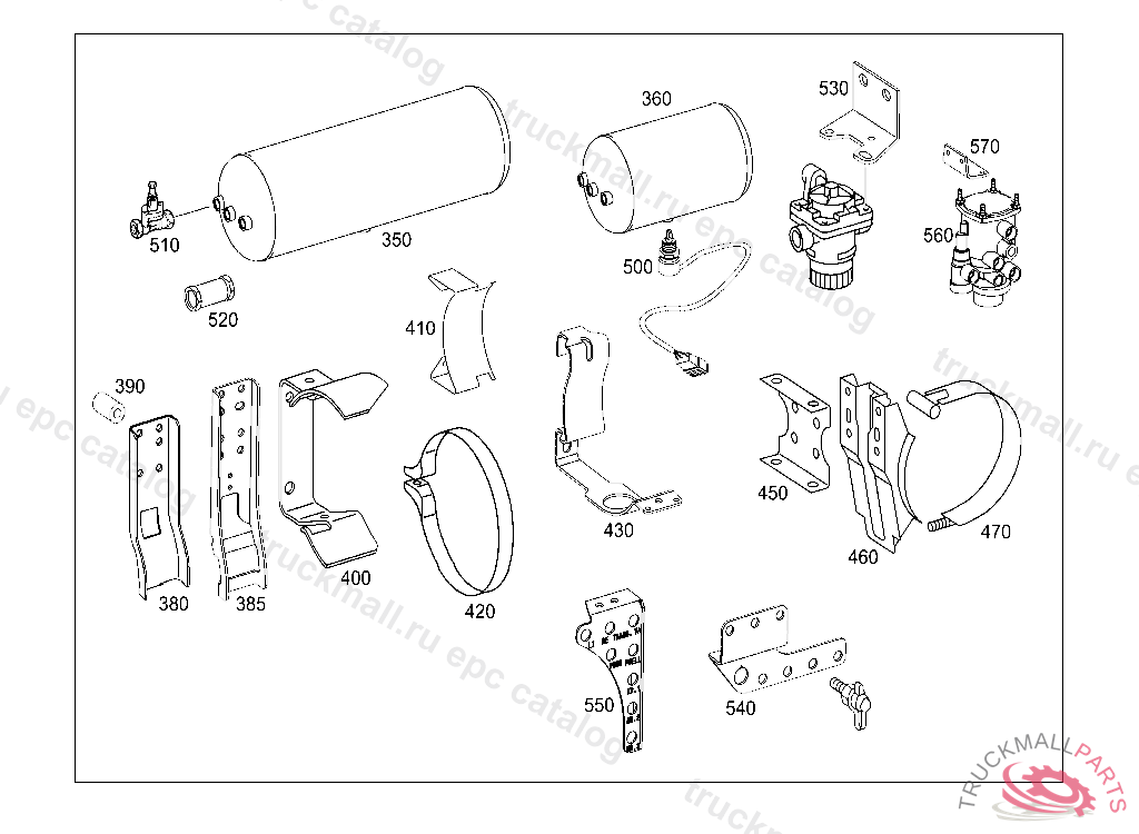 COMPRESSED AIR RESERVOIR (AIR RESERVOIR),STEEL VERSION 45L, FOR VEHICLES WITH VOSS 230 CONNECTOR: ADD. MOUNT FITTING "A 004 997 82 72" WITH O-RING "A 000 987 04 46" AND THRUST RING "A 000 997 02 03" TO AIR RESERVOIR