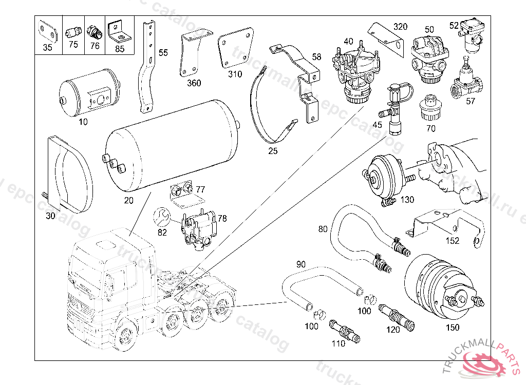 RESERVOIR20 L, TO VOSS 232, FOR VEHICLES WITH VOSS 230 CONNECTOR: ADD. MOUNT FITTING "A 004 997 82 72" WITH O-RING "A 000 987 04 46" AND THRUST RING "A 000 997 02 03" TO AIR RESERVOIR