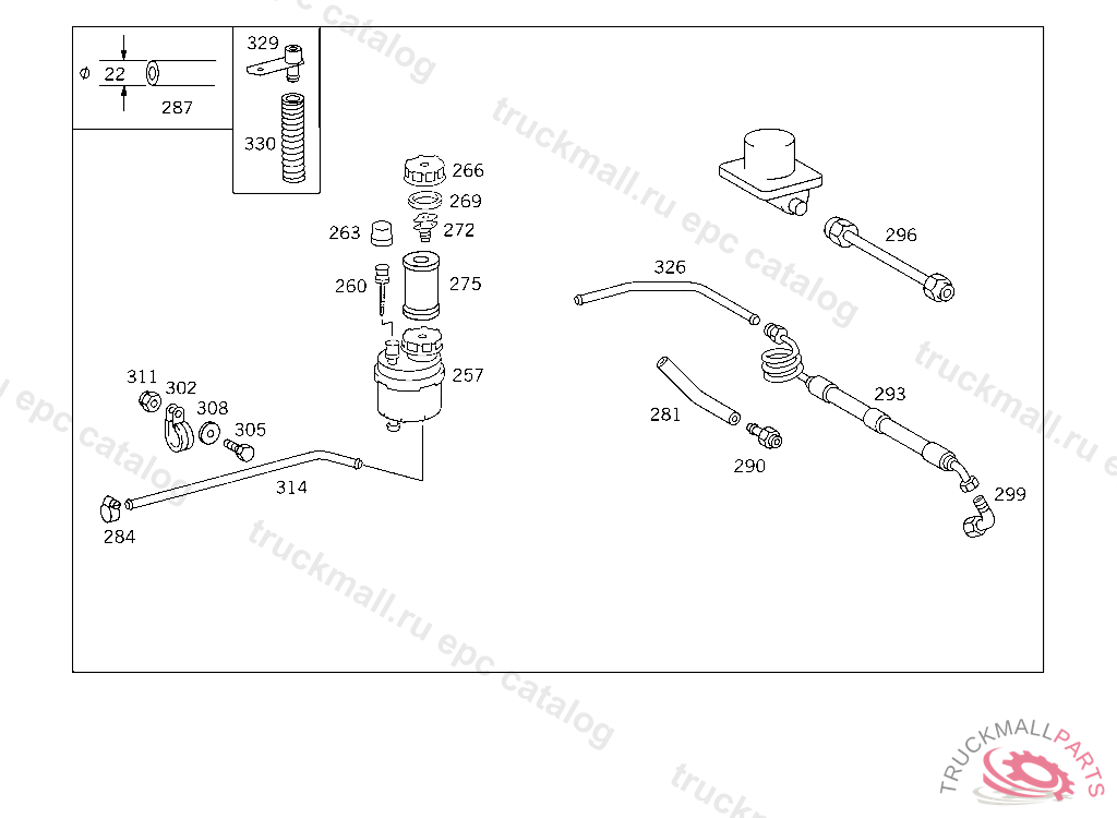 TUBE FROM HIGH PRESSURE HOSE TO STEERING, LENGTH AVAILABLE: 3000 MM