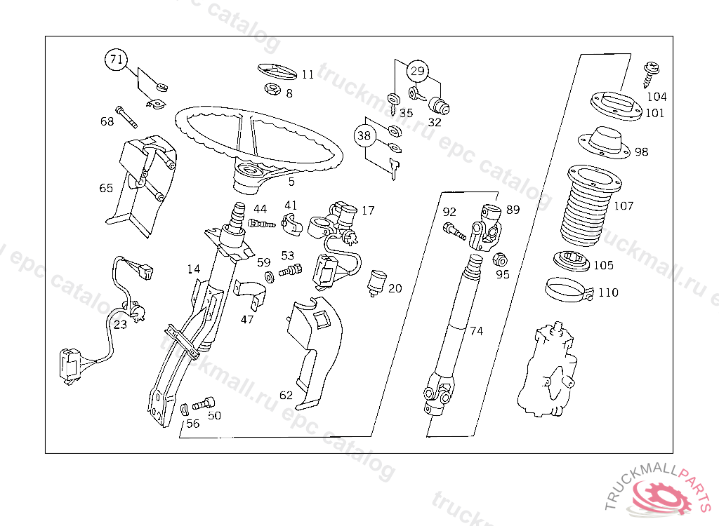 BEARING STEERING SHAFT, HOLE SPACING: 90/110 MM, TO BE ADAPTED DURING ASSEMBLY