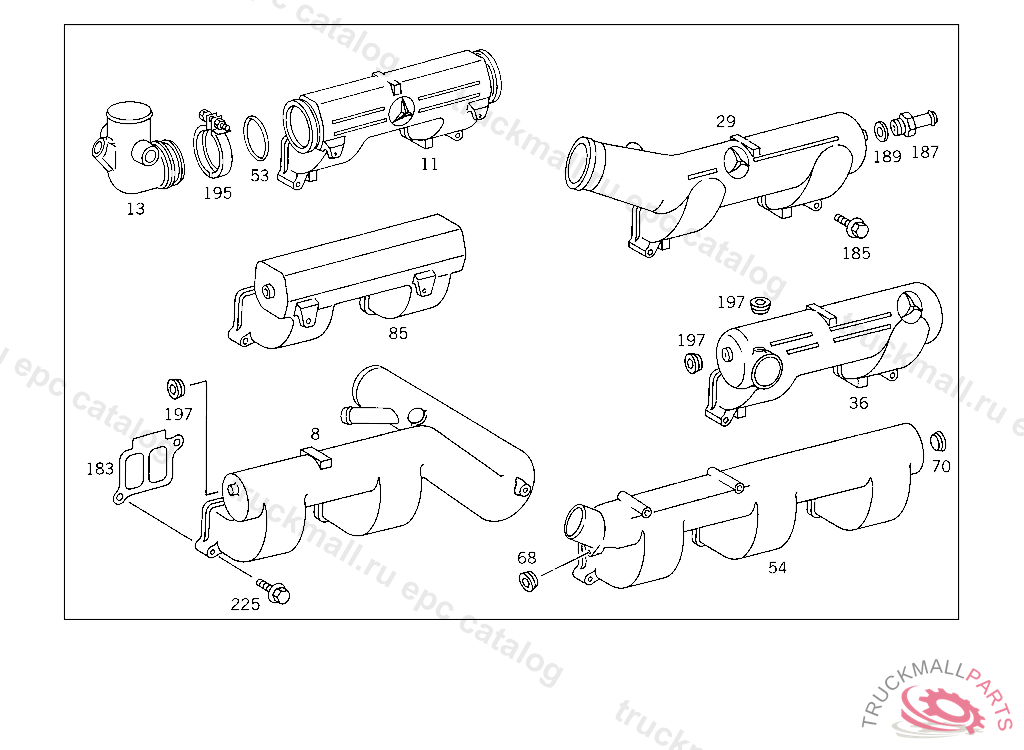 INTAKE MANIFOLD , FIRST EXHAUST STOCK OF OLD PARTS UP TO ENGINE 970574, Replaced By: A3641412701