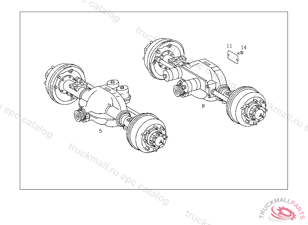 REAR AXLE WITH BRAKES,AXLE RATIO: 43:10, UP TO REAR AXLE 3 312607,DELIVER ADDITIONALLY: U-BOLT AND SPRING CLAMPING PLATE, SEE CHASSIS MICROFICHE,GROUP 32