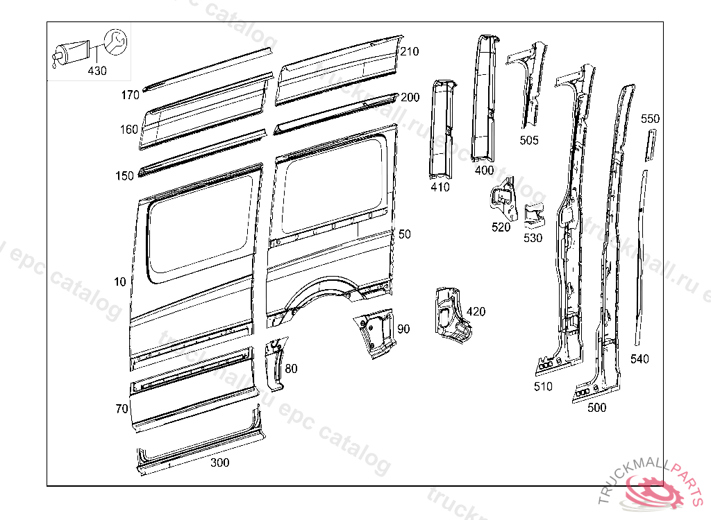 C-PILLAR RIGHT LOADING COMPARTMENT SLIDING DOOR, 20130814 E 08747620130925